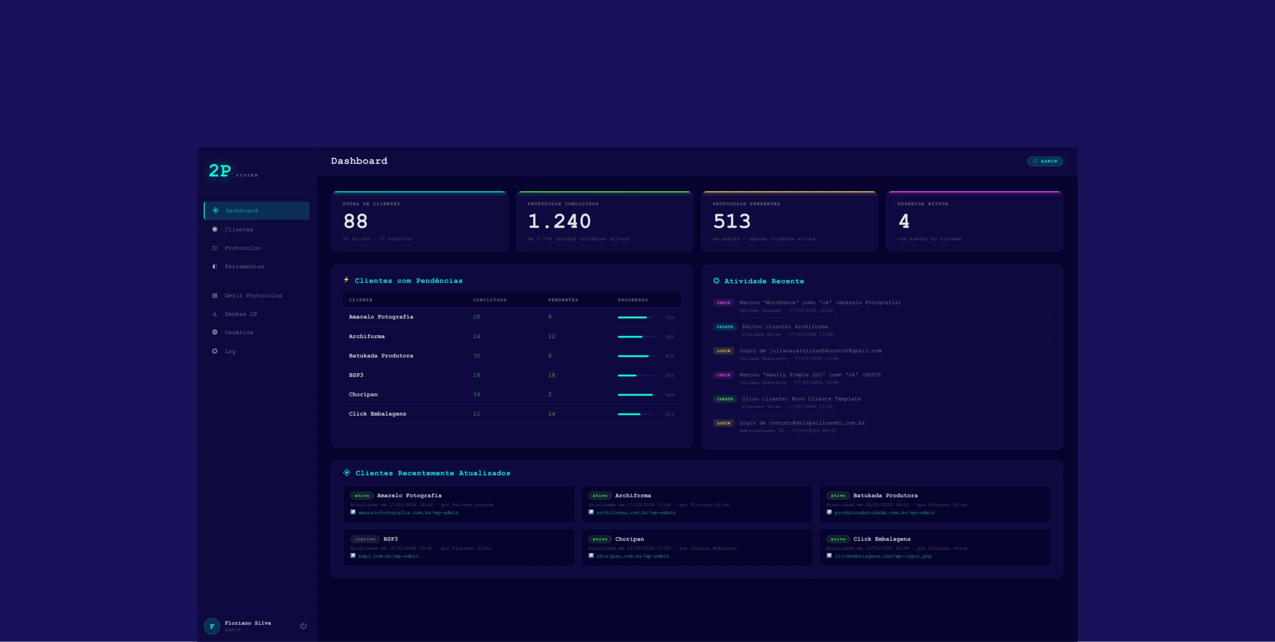 | Feature | Precisava adicionar protocolos sem atualizar cliente por cliente | Criada Gestão Global com propagação automática | Novo protocolo propagado para todos os clientes ativos de uma vez |